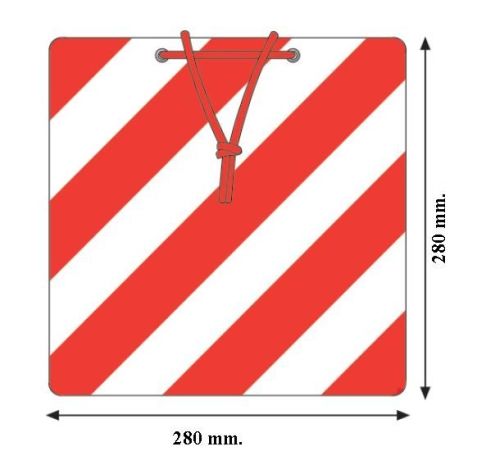 Знак устанавливается на выступающем краю перевозимого груза. Это должен быть самый большой выступ. Если же таких больших выступив несколько, то знаки должны быть на каждом из них. По правилам ПДД это должен быть быть специальный знак, а не случайные предметы или куски разной ткани. Это серьезное нарушение. На самом деле это не привычный нам знак круглой или квадратной формы с особым изображением, а полосатый рисунок или наклейка. Полосы должны быть красного и белого цвета, они должны быть изображены под наклоном. Знак не является сложным в исполнении, поэтому его легко можно сделать своими руками. При этом важно помнить о темном времени суток и плохих погодных условиях и делать знак со светоотражательной текстурой.
