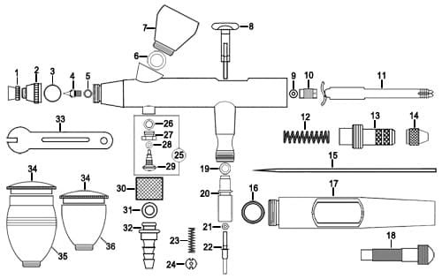Это самая популярная модель. Используется такой аэрограф для моделизма, нанесения изображений на металл, боди-арта и создания макияжа.