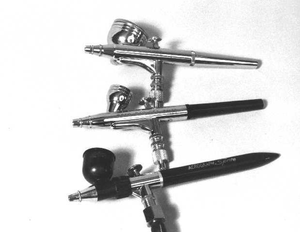 Этот пневматический инструмент также называют распылителем краски, или мини-краскопультом. Он предназначается для создания изображений на различных типах поверхностей, посредством пневматического распыления: воздушный поток под давлением, превышающим атмосферное, пропускается сквозь неширокое отверстие.