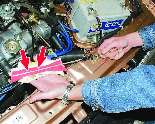 Осмотр пробки маслозаливной горловины.