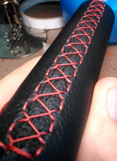 Сшиваем все 4 части (четыре раза примеряя оплетку на руль)