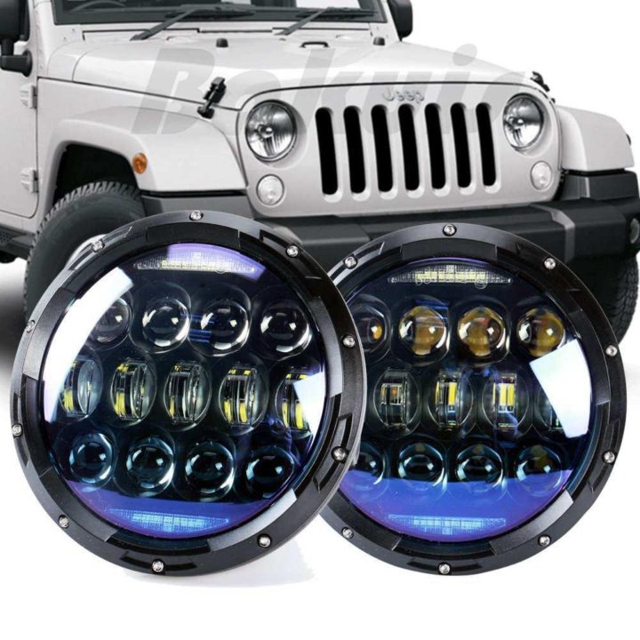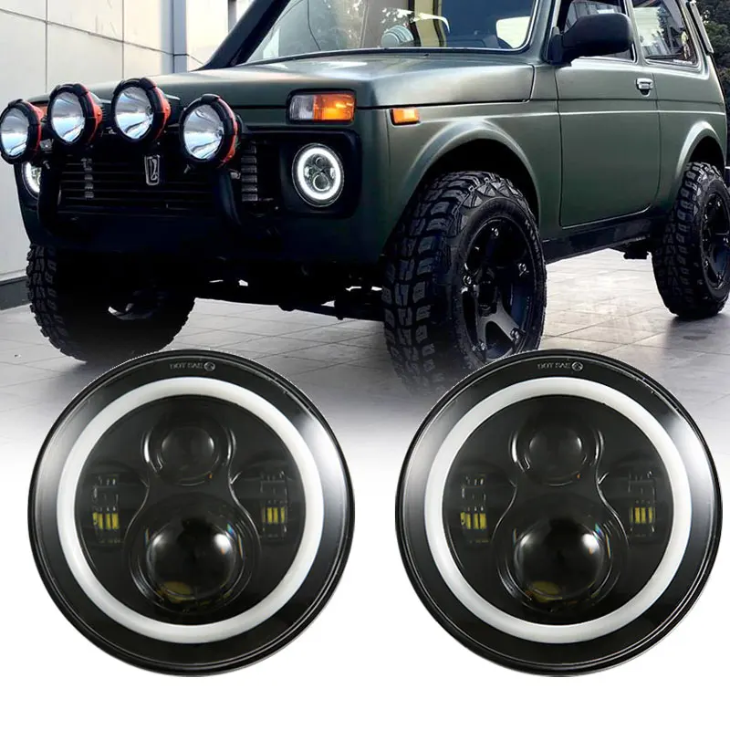 Светодиодные фары 90W, 7 дюймов с ДХО на ВАЗ 2101, Лада Нива 4х4, Jeep Wrangler