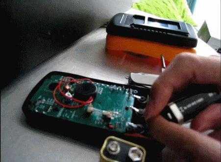 Мультиметр работает на батарейке (используется крона на 9 Вольт). Если батарейка начинает садиться, мультиметр начинает безбожно врать. В розетке вместо 220В может показаться все 300 или 100 Вольт. Поэтому, если показания прибора вас начинают сильно удивлять, в первую очередь проверьте питание. Косвенным признаком разрядки батареи могут служить хаотичные изменения показаний на дисплее, даже когда щупы не подключены к измеряемому объекту.