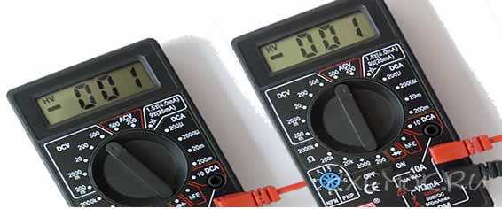 Соблюдение полярности щупов для цифрового прибора необязательно. Если она не совпадет, на величину показаний это не повлияет, а слева на экране загорается знак «-«.