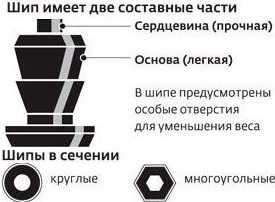 По форме рабочей поверхности они бывают: овальные, круглые, многогранные и квадратные. Считается что чем больше граней, тем лучше свойства шипа.
