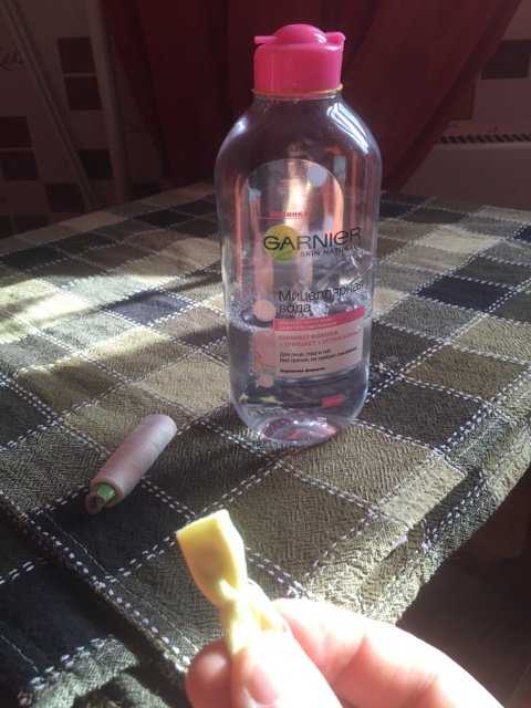 Ещё один интересный метод — использовать косметическую мицеллярную воду для снятия макияжа. Она продаётся во всех магазинах с косметикой. Не стоит выбирать дорогой вариант, главное, убедитесь, что в составе отсутствует спирт.