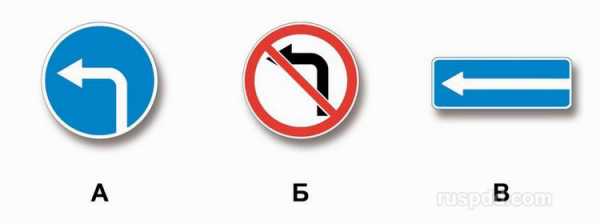 Знак 3.18.2 «Поворот налево запрещен» (А) запрещает только поворот, но не разворот. Знак 5.7.2 «Выезд на дорогу с односторонним движением» (Б) и знак 5.13.2 «Выезд на дорогу с полосой для маршрутных транспортных средств» (В) также не запрещают разворот на перекрестках таких дорог.