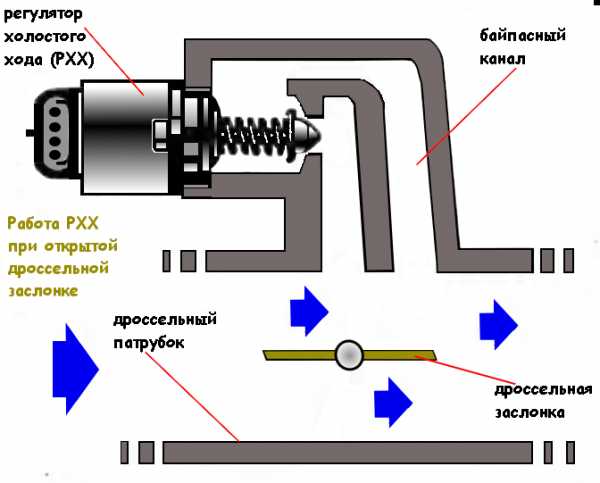 Принцип действия регулятора холостого хода (РХХ) рассмотрим на примере РХХ (датчика холостого хода) ЭСУД автомобилей ВАЗ 21083, 21093, 21099, 21102, 2111.
