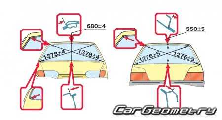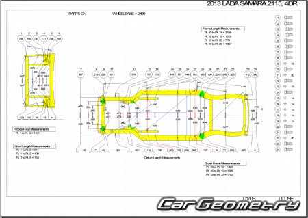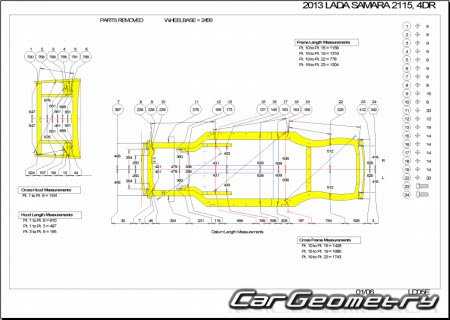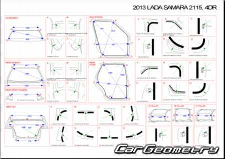 Контрольные размеры кузова, данные по геометрии Lada 2115 и контрольным точкам Ваз 2115 из различных ремонтных баз.