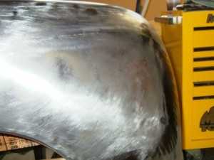 Не правильная последовательность ремонта. Вмятины были выправлены без предварительного ослабления напряжённых зон панели. В итоге металл растянут и требует дополнительной правки.