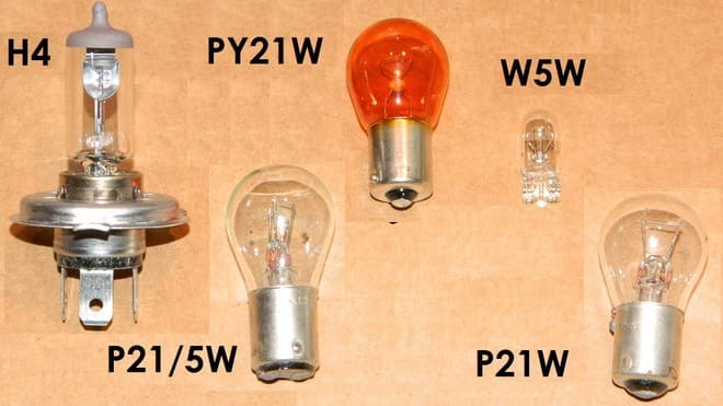 Галогенная двуспиральная соколем h5. Мощность спиралей, соответственно, 55 и 60 Вт.