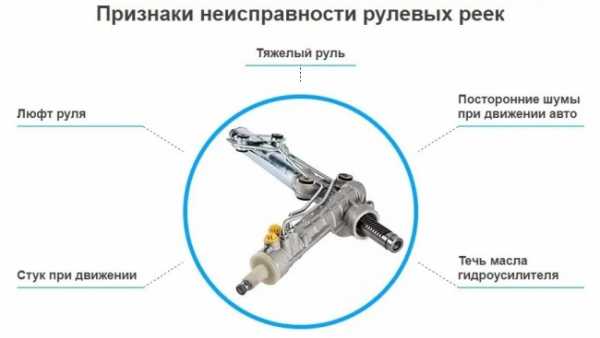 Устройство рулевой рейки и признаки неисправности