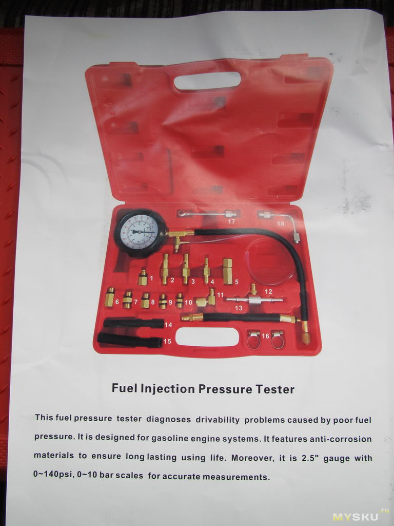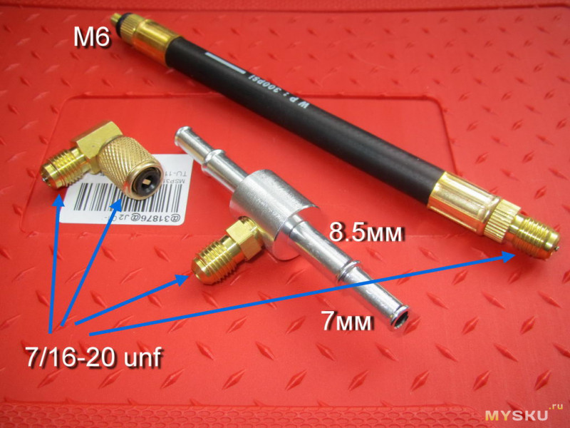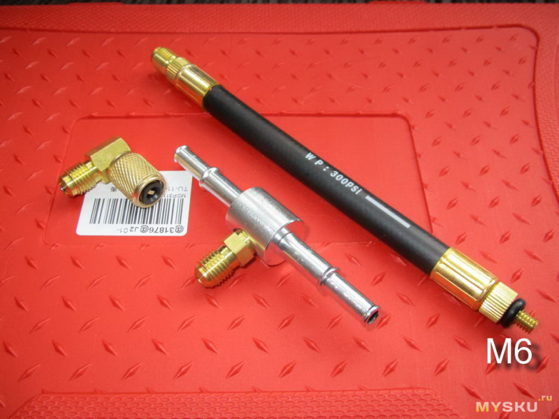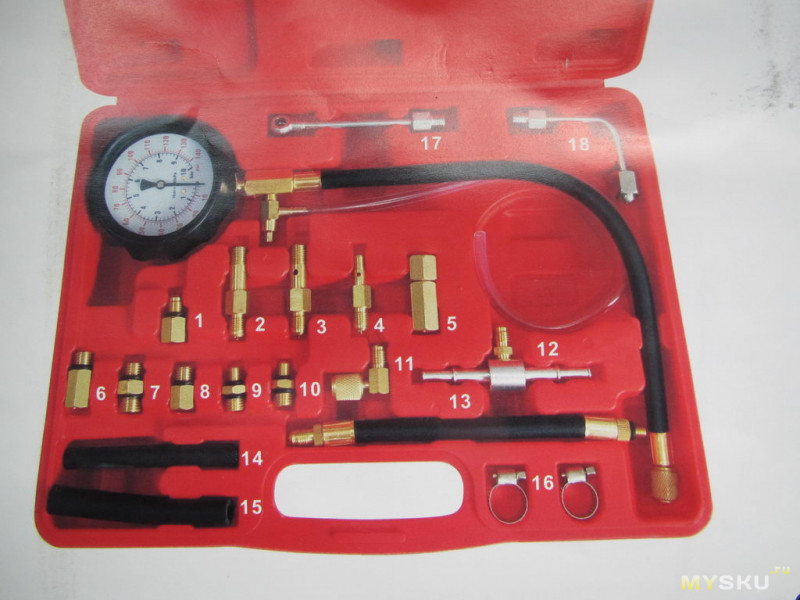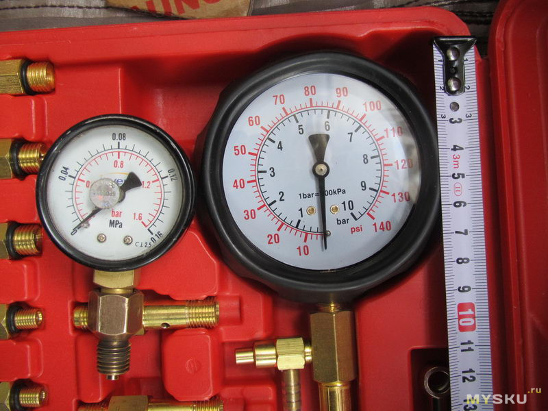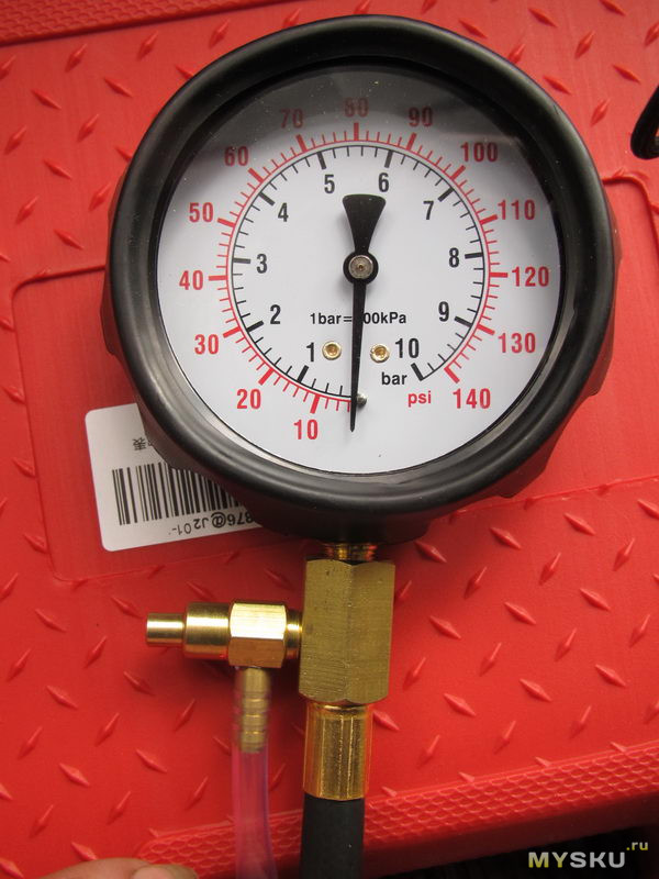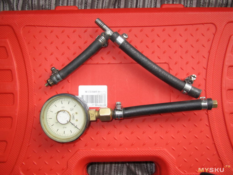 Тип прибора для измерения будет зависеть от особенностей устройства топливной магистрали конкретного автомобиля. К примеру, в топливную рампу (система питания с обраткой) на автомобилях ВАЗ штатно вмонтирован штуцер, через который можно произвести измерение. Чтобы проверить давление в топливной рампе, достаточно выкрутить золотник, а шланг, подключенный к манометру, закрепить на штуцере с помощью хомута и ФУМ-ленты.