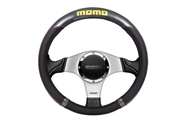 Спортивная оплетка для руля входит в спортивную серию MOMO System (Италия). Материал — популярная у автовладельцев экокожа, дизайн и фактура сделаны «под карбон». Модель обеспечивает надежный хват и плотно прилегает к рулевому колесу без проскальзывания. Поверхность оплетки перфорирована для лучшей вентиляции. Одевается без специальных инструментов. Универсальна.