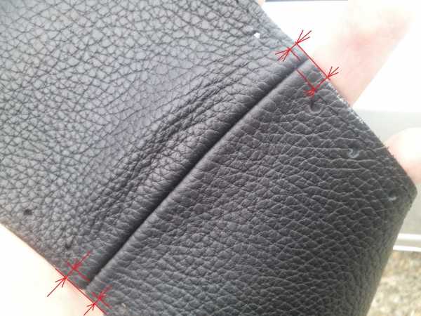 Полоса сшита нормально. Края подклеены, но не отшерфованы. Учитывая что толщина кожи около 1,5 мм это давало большой прирост по толщине. Пришлось самому спускать края.
