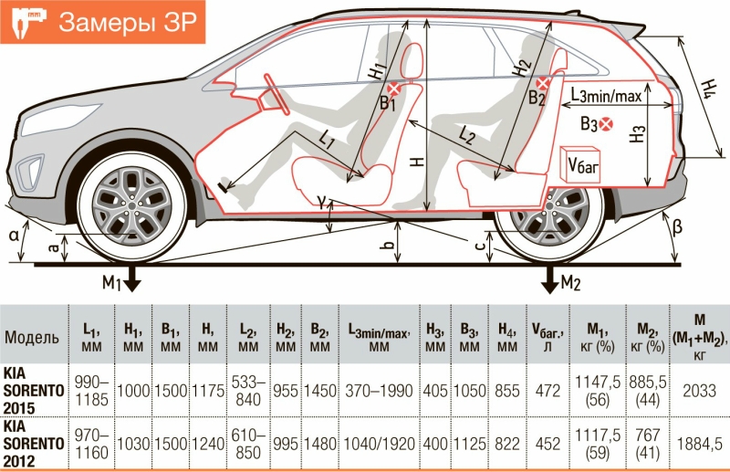 За первым рядом все конфигурации Sorento имеют грузовое пространство 73 кубических фута. За вторым рядом 38. и третьим рядом 11,3.