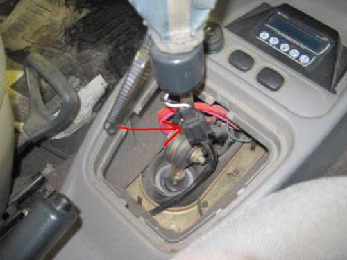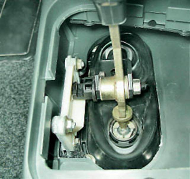 На валу переключения передач , который является стержнем, который соединяет переключатель передач с трансмиссией.