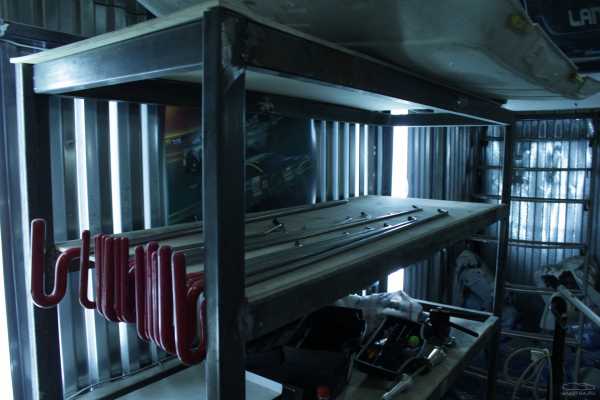 Стенд представляет собой простую конструкцию и может быть изготовлен самостоятельно. Его можно изготовить как из металла, так и из дерева. Опорные места стенда, которые будут контактировать с панелью, должны быть покрыты резиной, чтобы ремонтируемые детали не царапались. Капот или другую панель на стенде нужно закрепить.