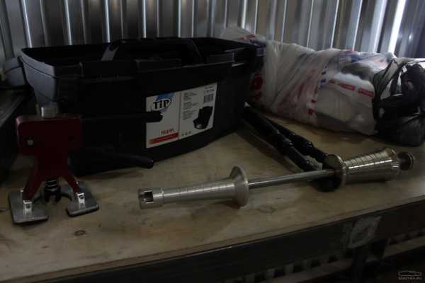 Почему первый блин часто получается комом? Потому, что никакие инструкции не заменят опыта. Править же вмятины, не повреждая краску, несколько сложней, чем печь блины, в чем мы недавно убедились. На рынке полно приспособлений, купив которые кто-то сразу ощущает себя мастером по ремонту авто. Обзавелись и мы скромным набором крючков и прочего. Назначение крючков — давить на вмятины с изнанки, куда нет прямого доступа.