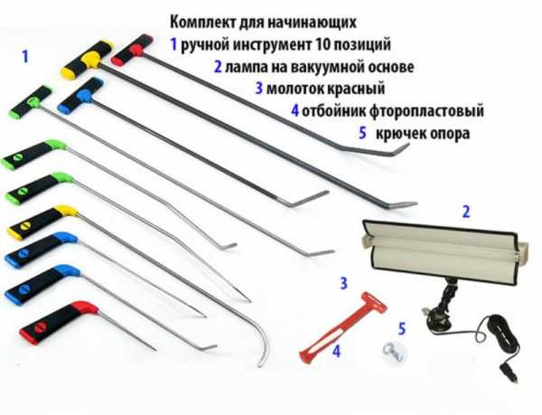 Основной способ удаления вмятин делается с помощью различных крючков, вот таких