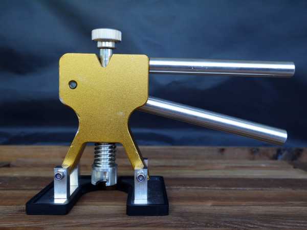 Инструмент с нужным кончиком выбирается в зависимости от конфигурации вмятины и панели. Для начальной практики нужно применять острую насадку. Так будет легче определить место расположение кончика инструмента на обратной стороне панели.