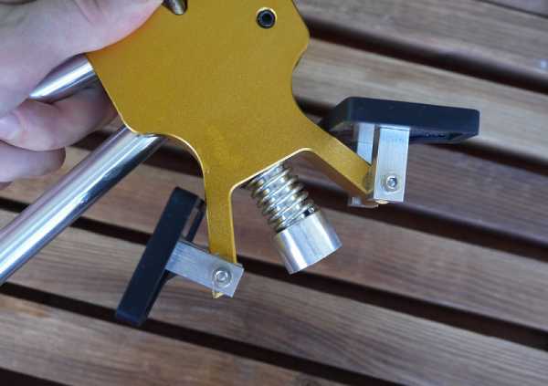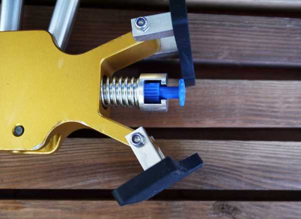 Внимательно рассматриваем устройство Pepsodentа и понимаем, что ничего сложного в этом устройстве нету. Тем более клеевой пистолет, идущий в комплекте Pepsodentа, у меня имелся в наличии. Итак нам понадобится: клеевой пистолет, кусочек рейки 20х40 мм, болт М8 со шляпкой под потай, шайба М8 и гайка-барашек (можно взять и обычную гайку). Делаем устройство изображенное на фото.