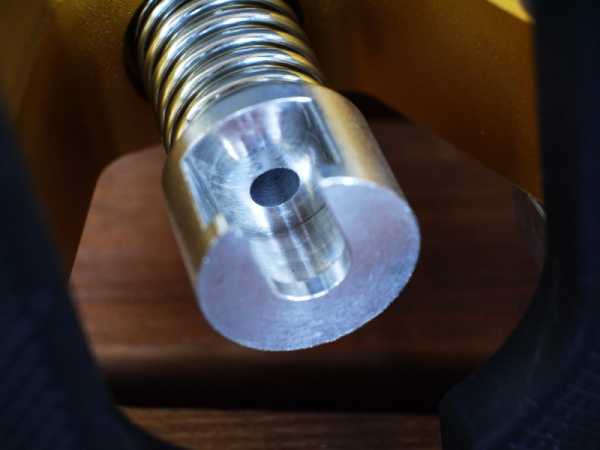 Дальше одеваем на болт наше коромысло (под ножки подкладываем мягкую ткань), одеваем шайбу и навинчиваем гайку-барашек.