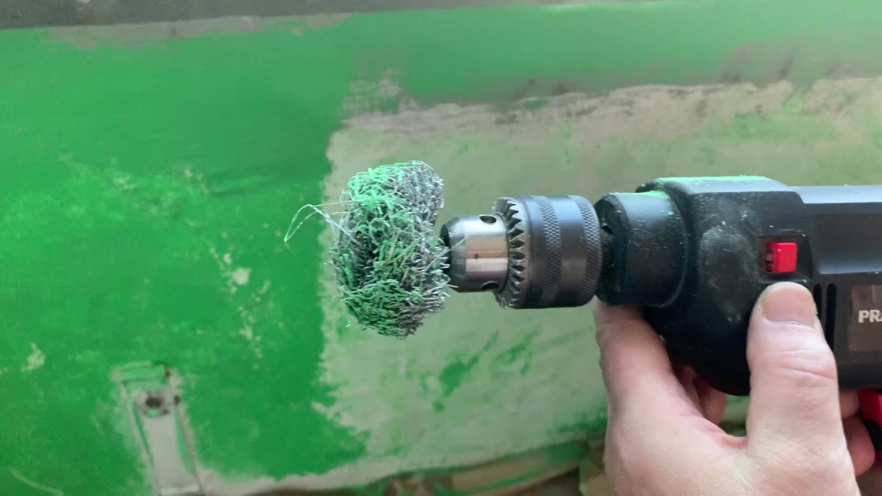 Теперь нужно настроить скорость оборотов – включите дрель без насадки и выберите минимальный режим. Теперь закрепите насадку, хорошо затяните патрон и приступайте к работе. Необходимо касаться стены лишь поверхностью насадки и не перемещаться слишком быстро. Чаще всего используют металлическую щетку. Но на практике она менее эффективна, нежели насадка в виде нескольких соединенных цепей из 3-4 звеньев с шайбой на концах. К тому же иногда металлические щетинки отрываются и могут впиваться в незащищенные участки кожи;