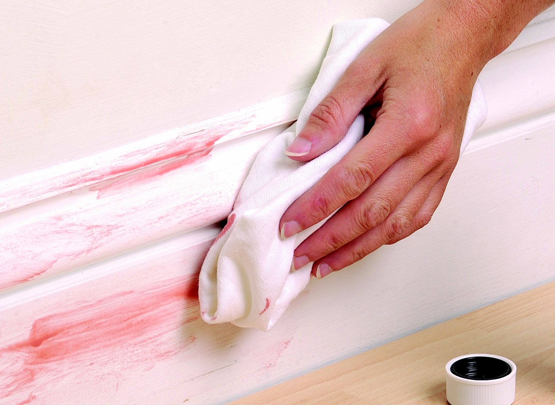 Совет. Чтобы определить, была ли старая капля от латексной или масляной краски, протрите капельницу ватным диском, смоченным денатурированным спиртом. Если цвет сошел с ватного диска, это латекс.