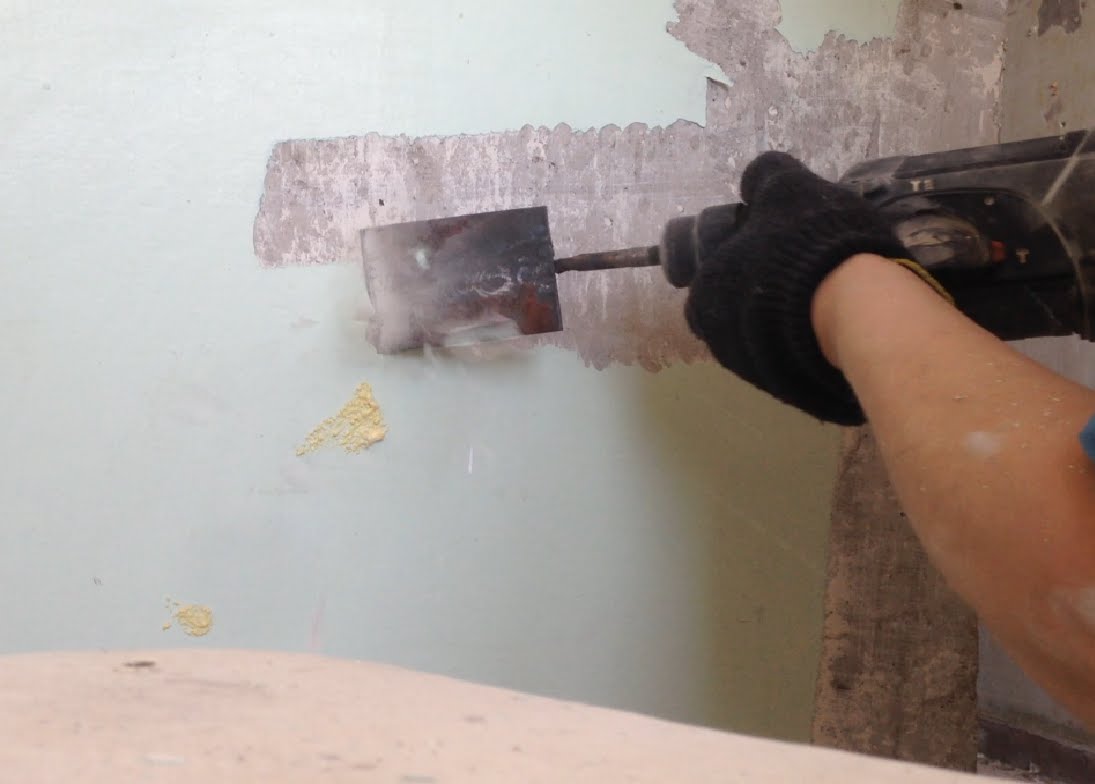 Этот метод невероятно трудоемкий. Вам придется махать топором на протяжении долгого времени, поэтому советуем выбирать не слишком тяжелый инструмент. При этом он не должен быть и слишком острым. Суть метода заключается в нанесении насечек на стену. Удары должны быть направлены по касательной к стене. Длина насечек может достигать нескольких сантиметров, а располагаться они должны на расстоянии не более 10 мм друг от друга. Только на такую поверхность вполне надежно ляжет шпатлевка или клеящий состав. Но основной недостаток метода на самом деле лежит немного глубже. Задумайтесь о том, сколько ударов по стене вам придется нанести и поймите, что каждый из них будет понемногу нарушать целостность основания, которое вы хотите избавить от ненавистной краски. Не все стены могут выдержать подобные пытки и остаться прочными и надежными.