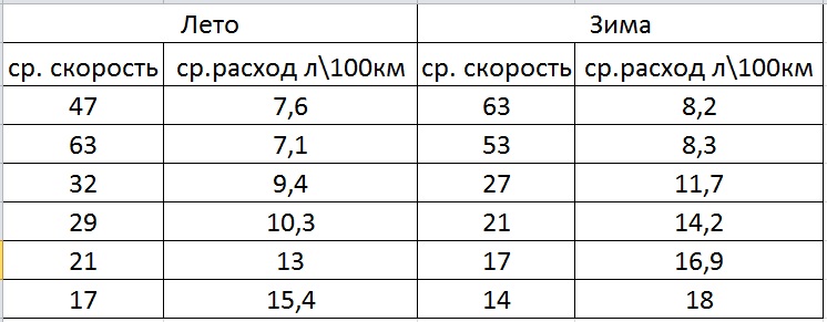 Среднее значение литров (литров) на 100 километров рассчитано для 50% шоссе и 50% езды по городу.