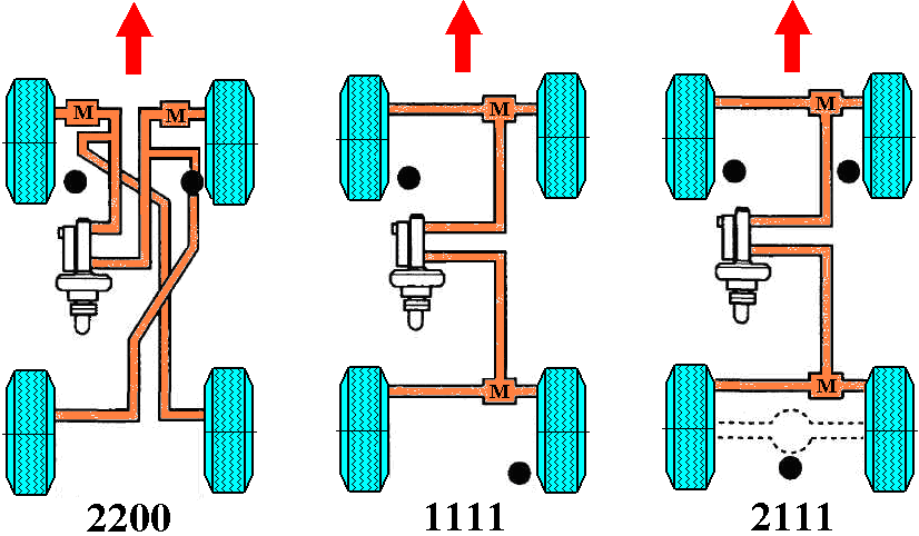 Наконец, выпускают трехканальную систему, с четырьмя датчиками угловой скорости. Три модулятора этой системы обслуживают три канала, производя индивидуальное регулирование давления тормозной жидкости в магистралях передних колес по-отдельности и обеих задних колес.