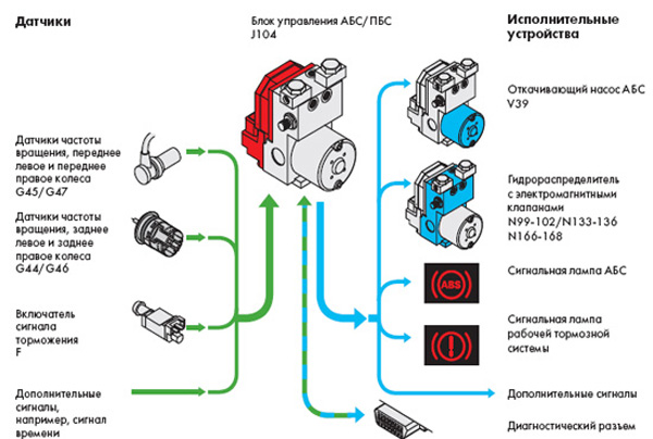 Эта информация поступает в блок управления АБС.