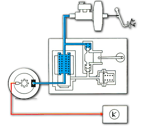 А так как блокировка происходит от переизбытка давления тормозной жидкости в магистрали, подводящей ее к колесу, “мозг” вырабатывает команду: “снизить давление!