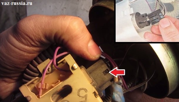 Изучив схему, определите, на каком из пинов разъема, подходящего к электродвигателю, должен приходить «+» после включения первой скорости вентилятора. Вставьте в этот пин один из контактов контрольки, второй контакт замкните на «массу», включите зажигание и поверните переключатель вентилятора печки в любое из положений. Если лампочка контрольки загорелась, значит, проблема в электродвигателе. Если питание на разъем так и не пришло, необходимо искать обрыв проводки в цепи, идущей к включателю отопителя.