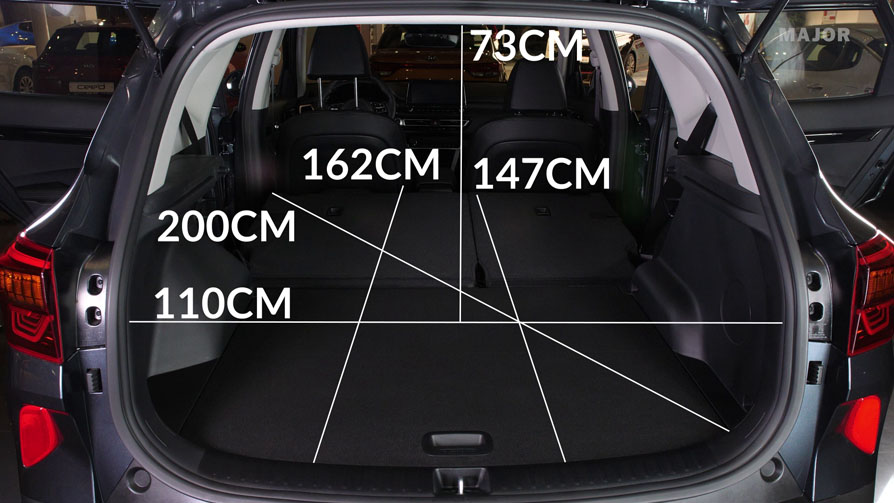 Оно заключается в площади проема, образующегося при открытии крышки багажника. Его ширина дает возможность использовать отделение при перевозке габаритных вещей, например, для перевозки велосипеда.Трансформация спинок сидений увеличивает отсек до 1500 л.
