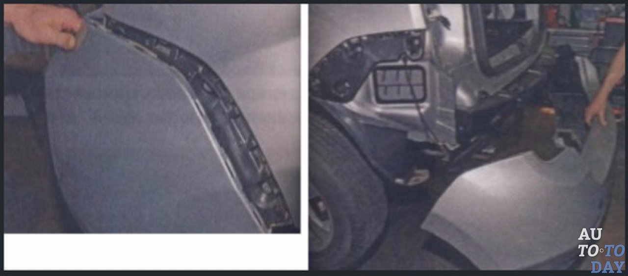 Монтаж новой пластиковой конструкции проводится в обратном порядке. Сначала фиксируются в соответствующем положении пластиковые защелки. Затем закручиваются все болты и саморезы. На этом этапе важно не забывать про те крепежные элементы, что располагаются под днищем кроссовера и рядом с брызговиками. В конце устанавливаются фары.