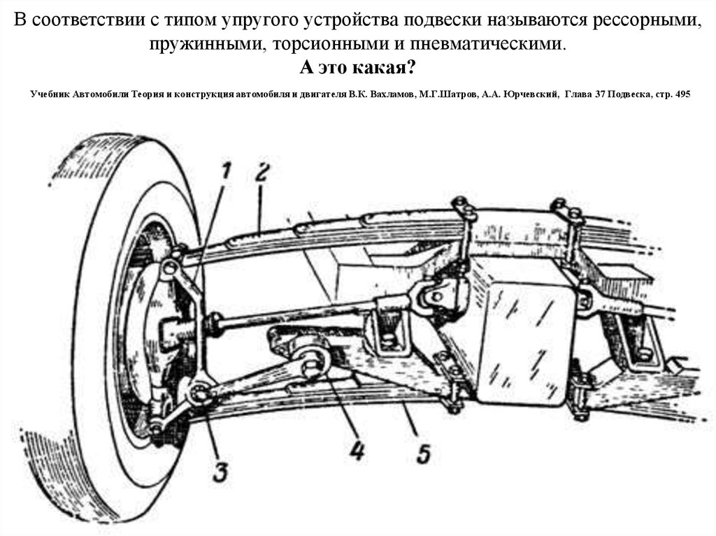 Она является соединительным звеном между колесами и кузовом автомобиля и представляет собой часть шасси. Известны разные виды подвесок автомобиля.