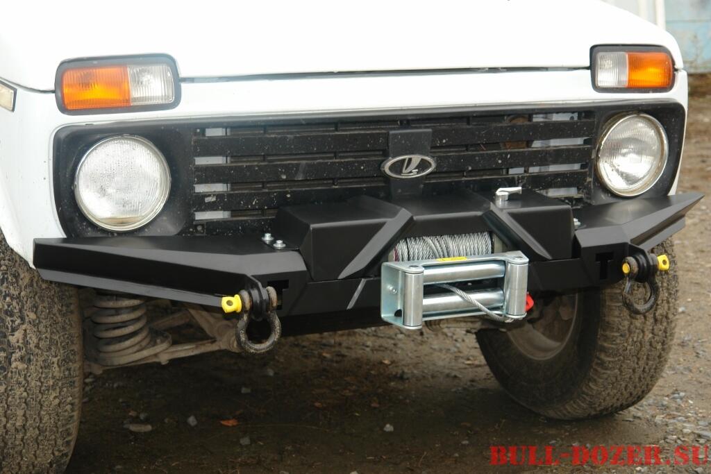 Обычно передний силовой бампер оснащён площадкой для лебёдки. Лебёдка очень полезное приспособление для внедорожников, поэтому даже если её у вас нет постарайтесь выбрать защиту, совместимую с установкой электрической лебёдки. Обратите внимание на буксирные проушины и крепления к раме автомобиля.