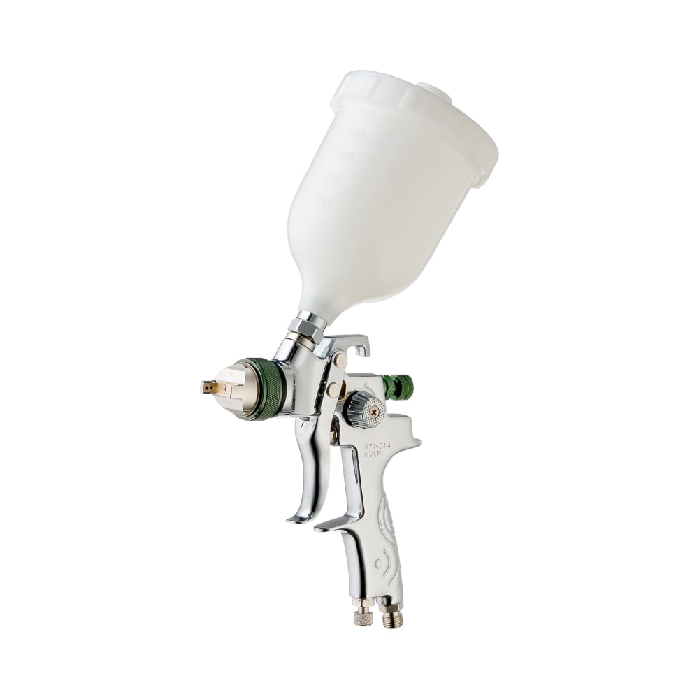 • LVLP – пульверизаторы также низкого давления, однако уже с небольшим объёмом перенесения краски на деталь.
