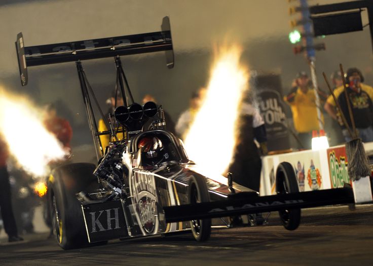 Потрясающий вид — и звук — драгстера Top Fuel и Funny Car, которые могут разогнаться до 300 миль в час в мгновение ока, просто потрясающие.