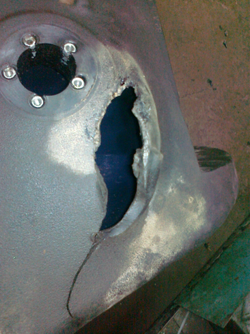 Обтекатель подгорел, поэтому я отрезал скобу обтекателя на баке, которая полностью приварена точечной сваркой.
