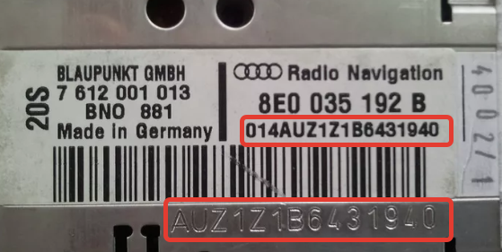 Однако есть и другие, которые мы не перечислили. Независимо от модели и года выпуска все оригинальные радиоприемники Audi маркируются уникальным серийным кодом, который необходимо найти для расчета безопасного кода. Чтобы увидеть этот номер, извлеките аудиоблок из центра консоли и посмотрите на этикетки по бокам или сверху — пример серийного номера: AUZ2Z7B8371102 . Если у вас уже есть идентификатор, введите его в генератор вверху страницы и нажмите кнопку «Рассчитать».