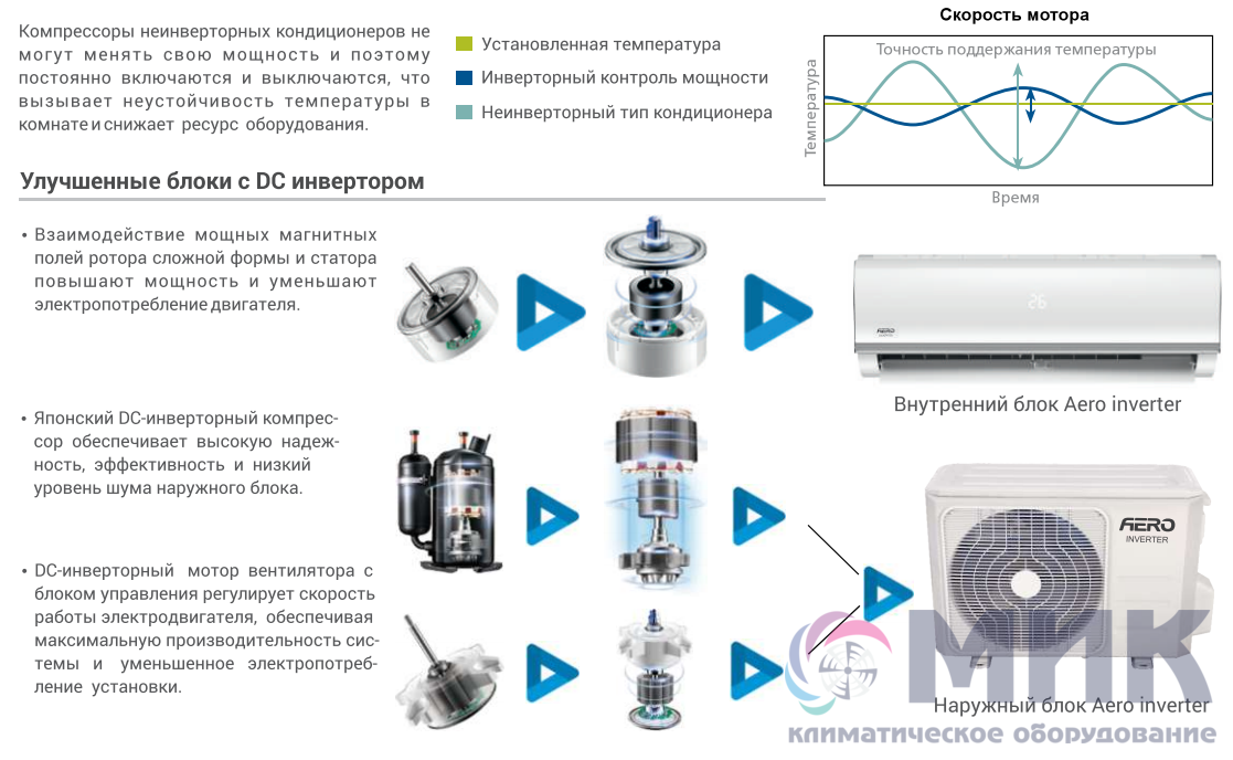 В сплит-системах инверторного типа во внешнем блоке также расположена плата управления, которая есть и в мультисплит-системах. Благодаря тому, что компрессор располагается именно в наружном блоке, уровень шума от работающего кондиционера в квартире гораздо ниже, чем со стороны улицы.