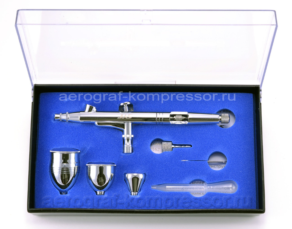 Поставляется только с иглой 0,2 мм и соплом. Проверено, почищено и осмотрено. Поставляется в черном пластиковом кейсе.
