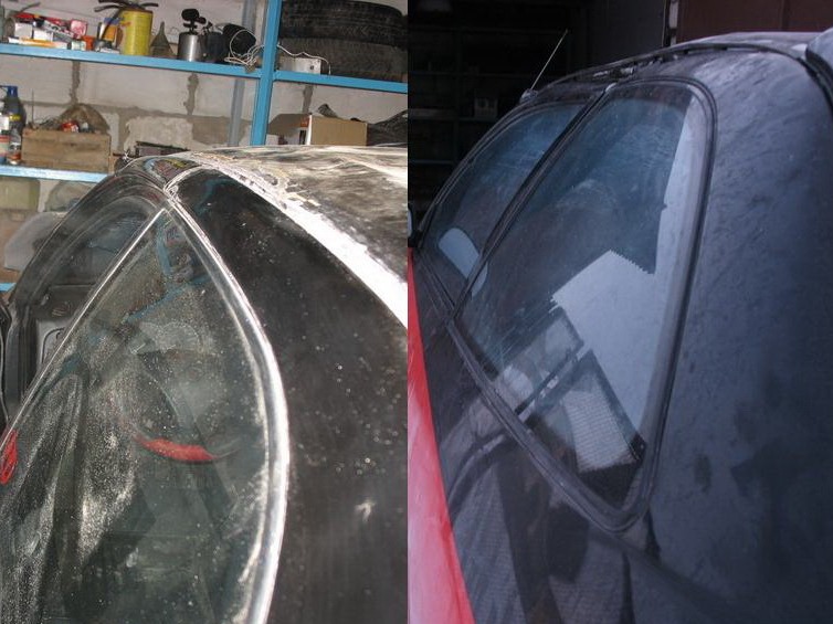 Второй тип кузова — с отделенными от крыши стойками. Обычно, в области стыка установлен молдинг. С таким видом крыш намного проще работать, и в данном виде кузова не нужно работать со стойками. Все что нужно — это высверлить место контактной заводской сварки, а затем установить новую крышу на старое место, и снова все проварить. Затем все нужно аккуратно зашлифовать, покрыть грунтовкой и краской, и в конце вскрыть несколькими слоями лака.
