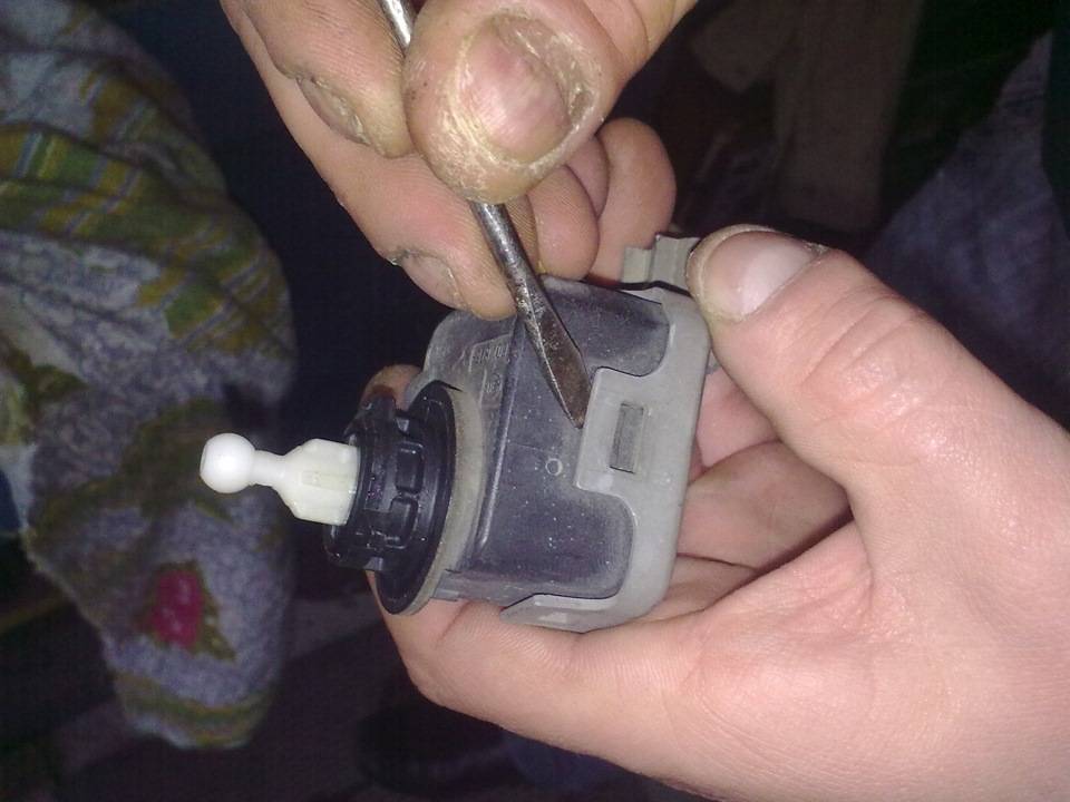 Потом снял аккумулятор и начал ставить механизм ,но попробуй заглянуть внутрь фары определив с какой стороны пазик в который тебе надо попасти шариком на конце корректора,когда попадешь почувствуешь что корректор просто не вытаскивается из фары а зацепляется ,ну потом уже утопи его поглубже и поверни чтоб механизм зафиксировался. Надеюсь понятно объяснил )))))