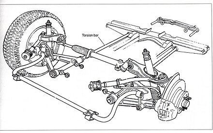 Торсионная подвеска отличается от классической пружинной тем, что вместо пружин в ее конструкции используются торсионы. Конструкция подвески предельно проста и одновременно эффективна. Торсион представляет собой упругий вал, который одной стороной жестко закреплен на раме или усиленном элементе кузова автомобиля, а другая сторона связана со ступицей колеса. В случае с переднеприводным автомобилем, торсион закреплен на нижнем поперечном рычаге.