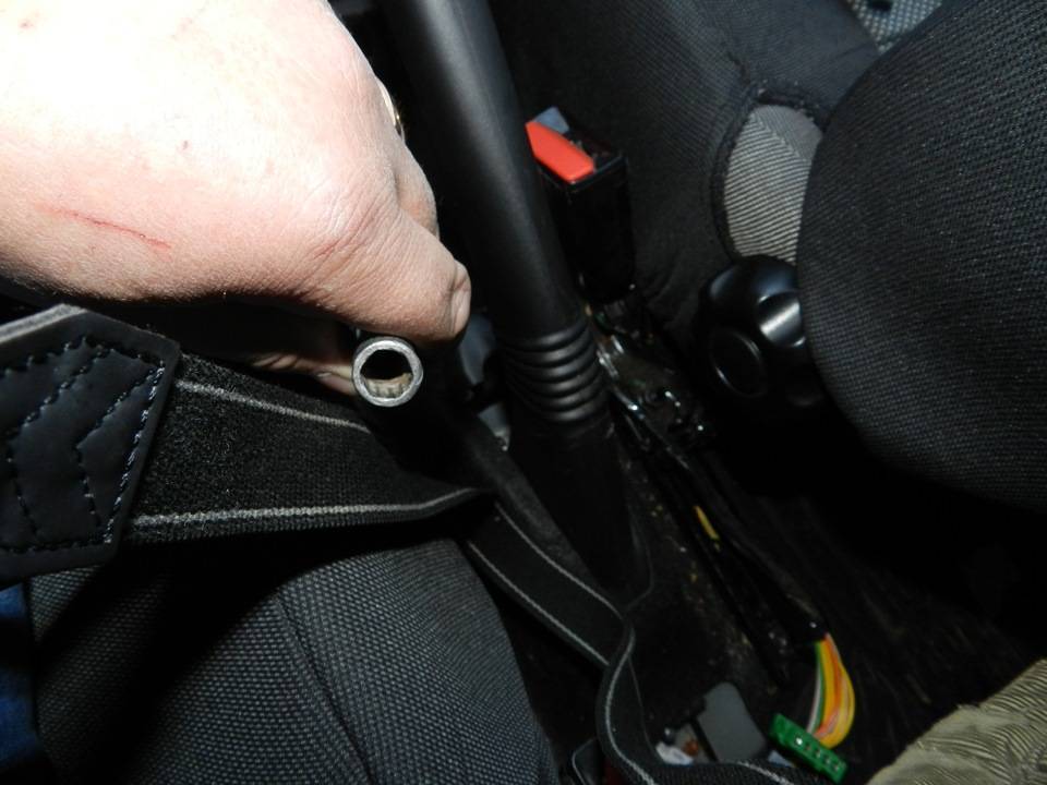 Цепляя за зуб гайки-звездочки необходимо завернуть отверткой через небольшой лючок в суппорте