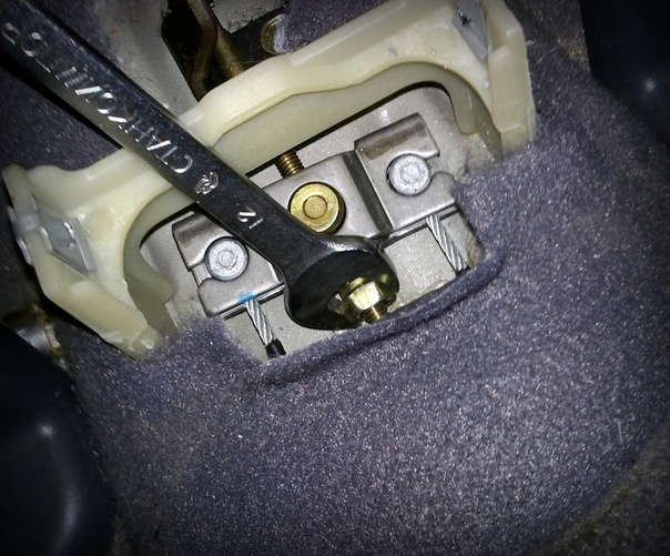 Далее следует отсоединить вилку от приводного рычага, сняв оттяжную пружину. Затем механизм поворачивают. Рычаг колодок доводят до упора в штангу. Натягивается трос и вилка либо заворачивается, либо отворачивается до совпадения отверстий на рычаге и вилке. Элементы соединяются между собой, и устанавливается оттяжная пружина на приводной рычаг.